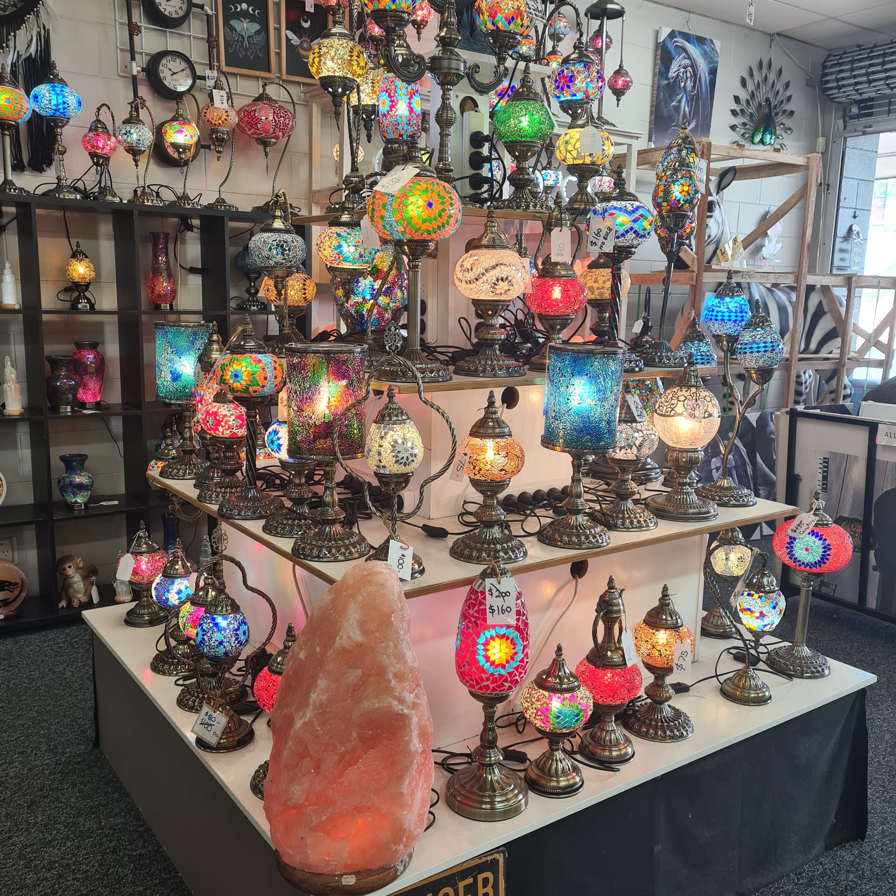 Some great idea's for a birthday, mother's day or Christmas gift is a Mosaic Lamp! Ranging in many colours and sizes from single's upto 9-Tier bulbs! Also salt lamps, Ornaments and much more!